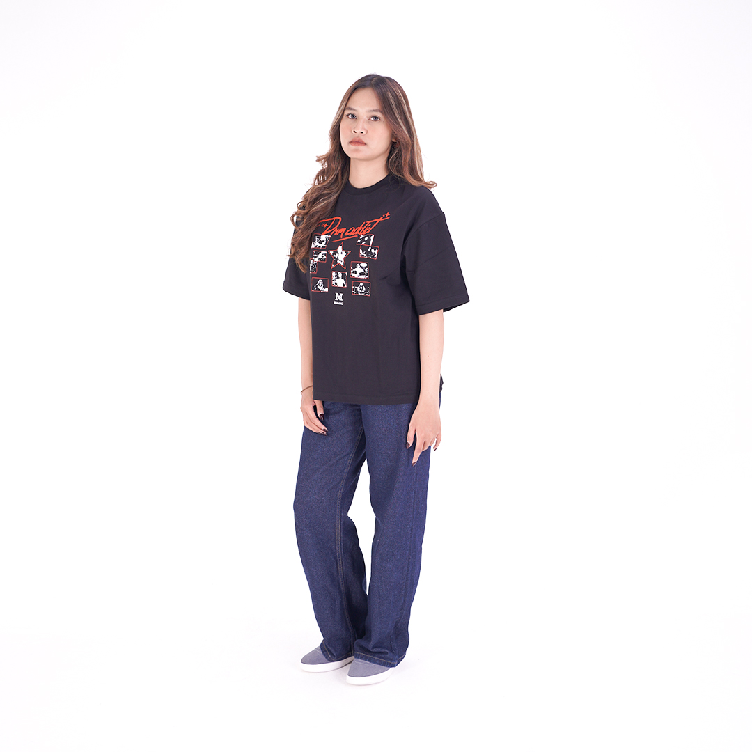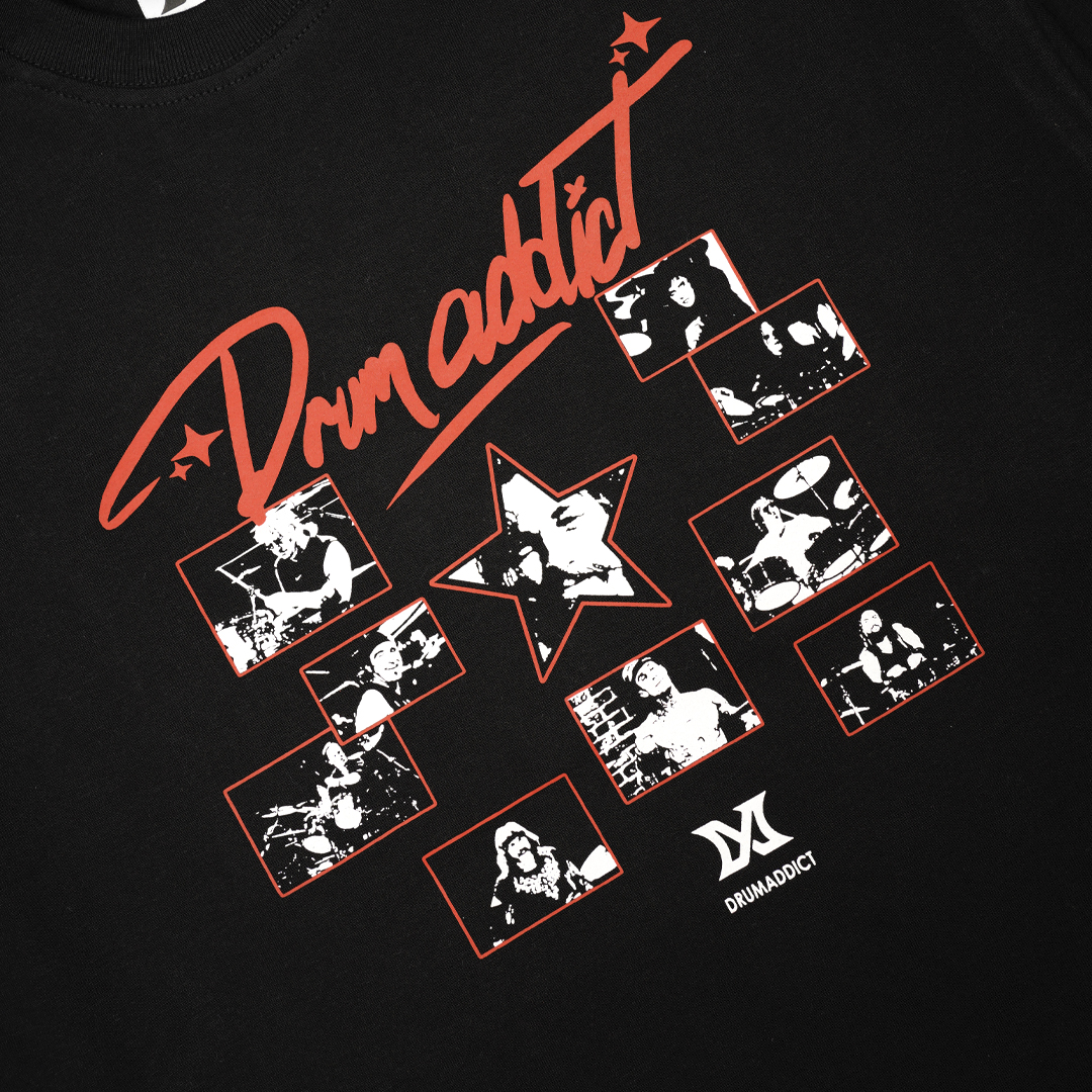 Sebuah tribute untuk para dewa rhythm. The Drum Pantheon menghadirkan komposisi visual yang bold dan penuh karakter, memadukan elemen graphic kolase dengan sentuhan tipografi yang kuat. Desain ini bukan sekadar apparel, tapi statement untuk mereka yang hidup dalam beat dan energi panggung.
